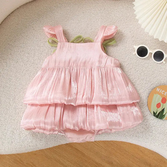 Fiyonklu Balon Kol Elbise & Romper (Kız Kardeş Uyumlu)