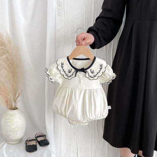 15% İNDİRİMYaka işlemeli Beyaz Romper